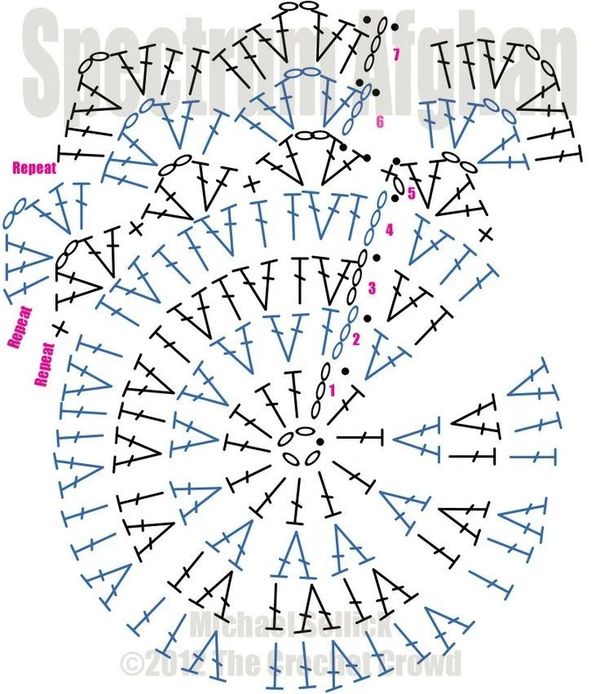 It's all in the numbers - 9's or 7's, decrease and increase. But once you learn the basics of a ripple pattern, you can differentiate it using as many different stitches as you know!